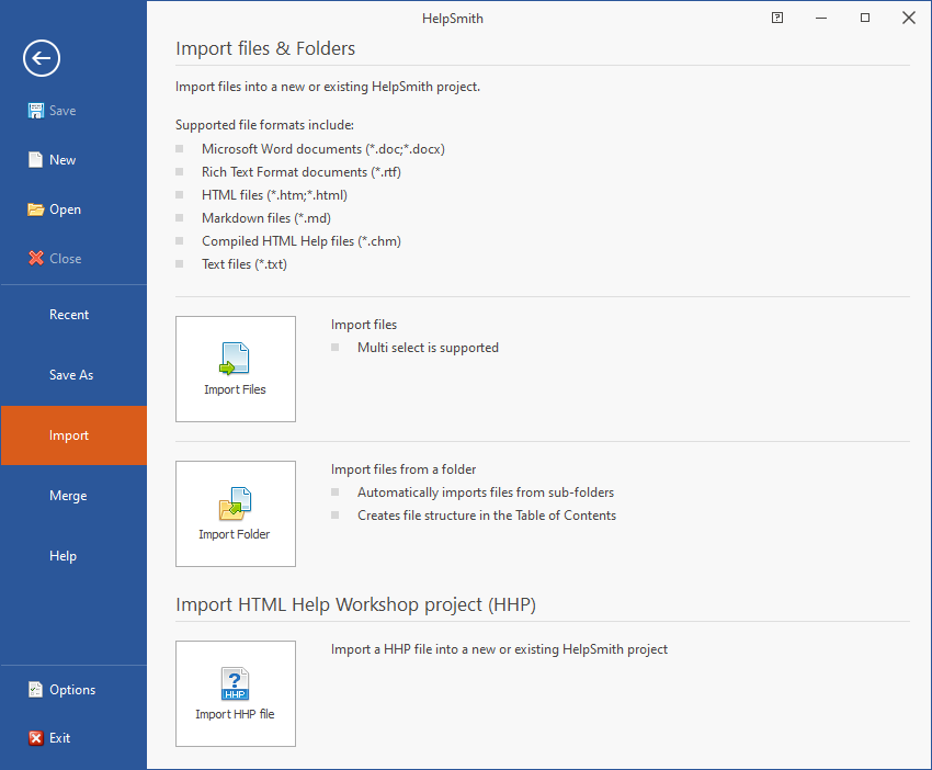 Importing Help Files and Documents / Importing One or Multiple Files |